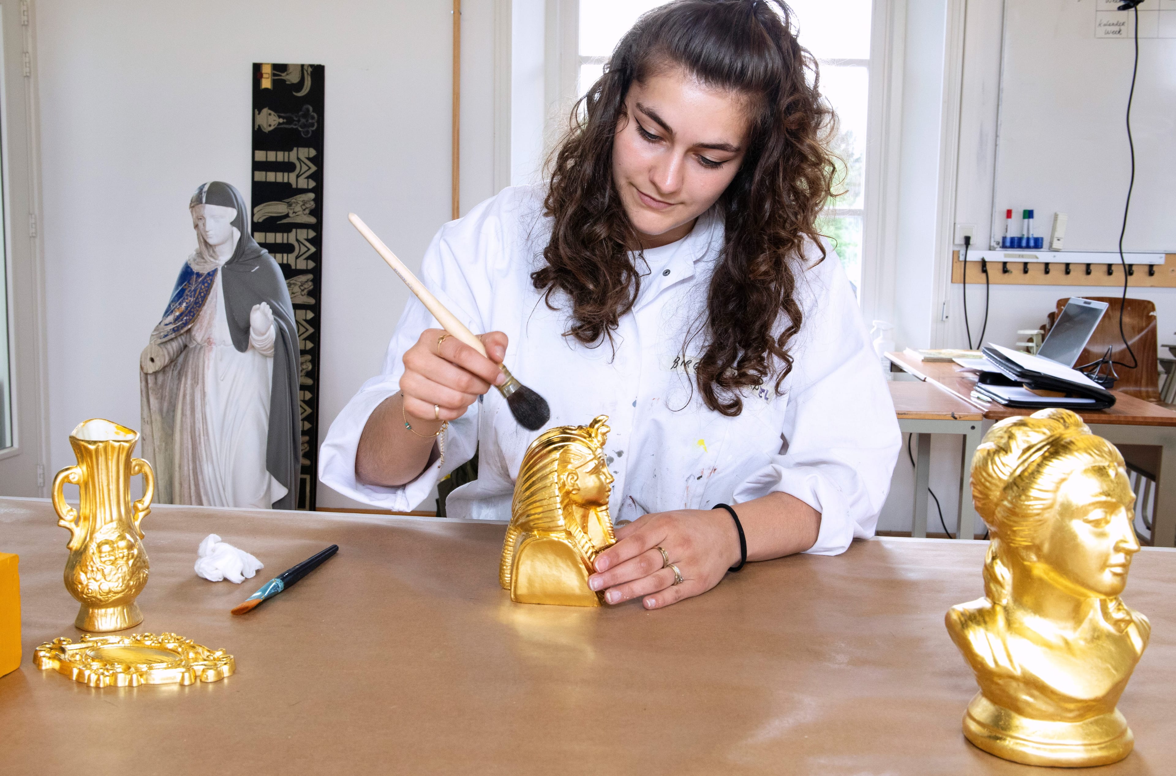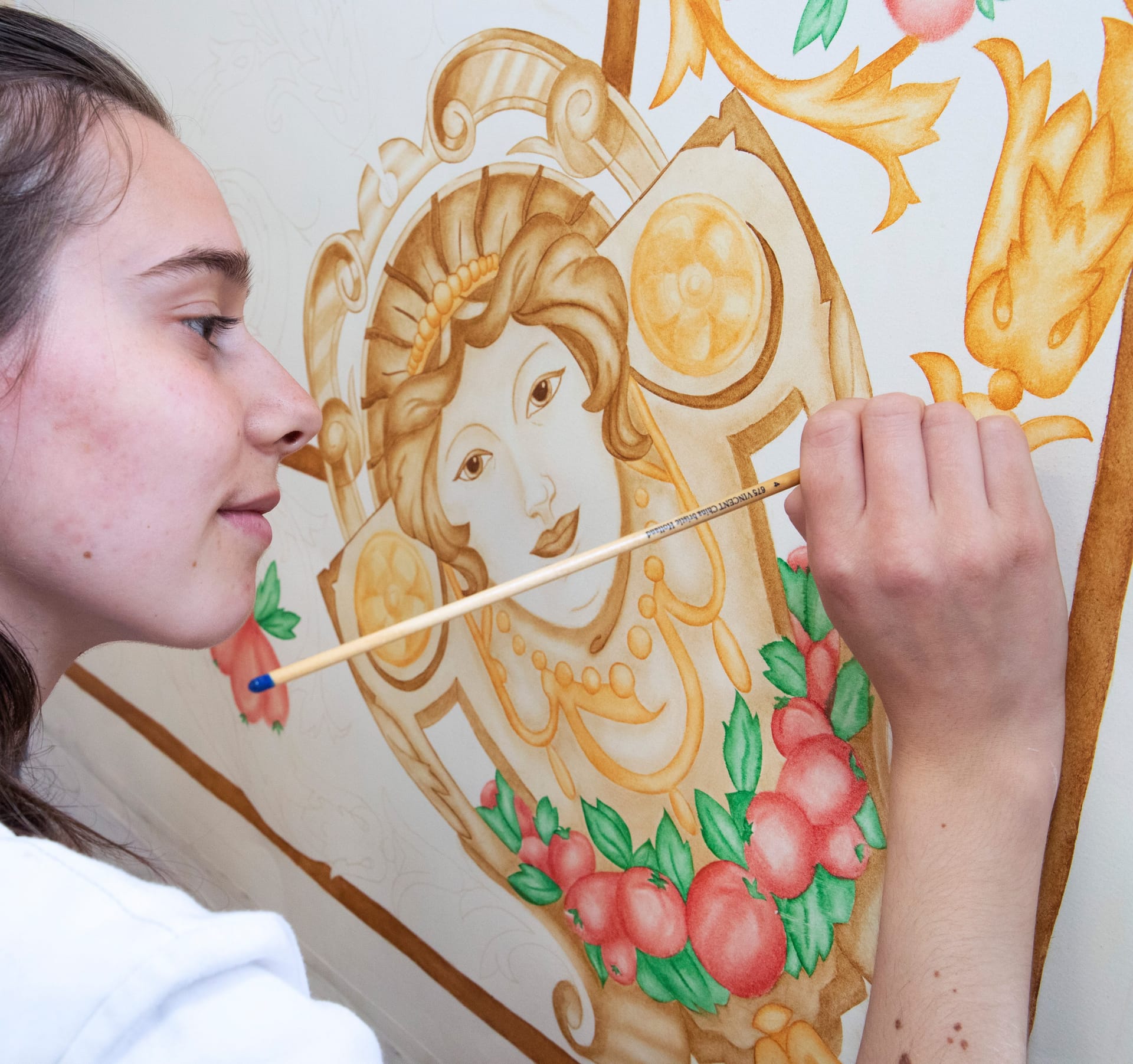 Als Decoratie- & restauratieschilder in opleiding ga je aan de slag in ons atelier. Je krijgt hier diverse opdrachten en modules waarbij je verschillende technieken en materialen leert toepassen, zoals imitatieen decoratietechnieken. Of denk aan het aanbrengen van bladgoud en andere verguldingstechnieken. Je leert verschillende onderzoeksvaardigheden die nodig zijn bij restauratieschilderwerk, zowel in het interieur als exterieur. Daarnaast leer je een advies opstellen en voer je dit uit in een levensecht project.